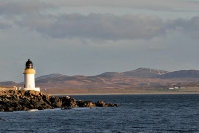 The island is home to many bird species and is a popular destination throughout the year with birdwatchers, especially in autumn and winter to see the wintering population of Greenland white-fronted and barnacle geese. Resident birds include Red-billed Chough, Hen Harrier, Corncrake, White-tailed Eagle, Golden Eagle, Oystercatcher, Cormorant and many wading birds. The climate on Islay is often more clement than the Scottish mainland owing to the Gulf Stream.